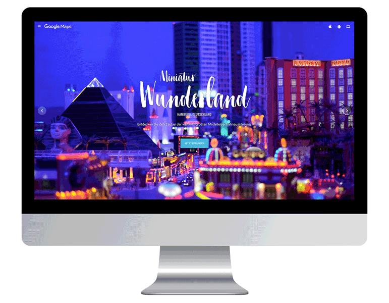 Interactive, illustrated map for Google Maps Miniatur Wunderland Hamburg.